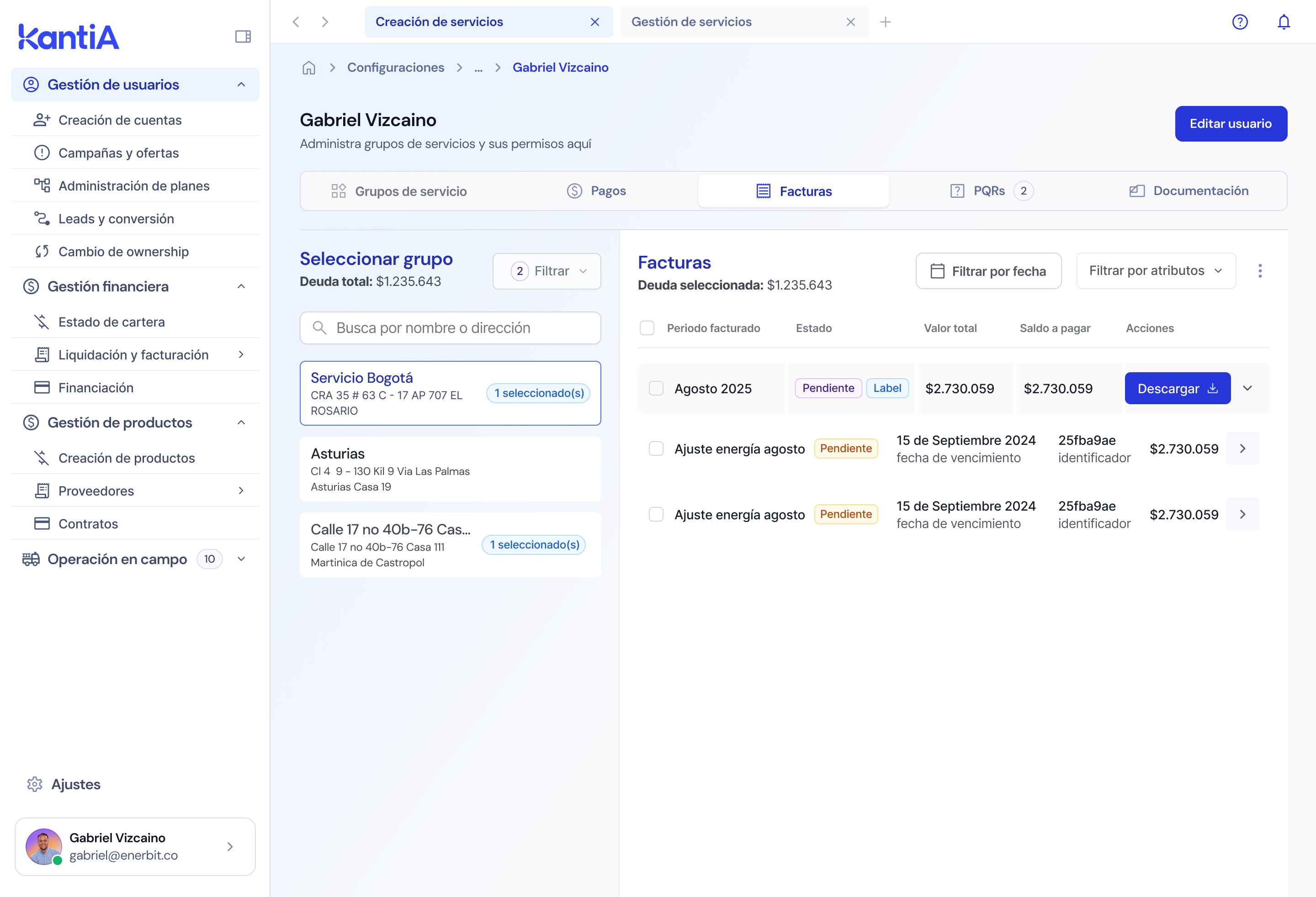 En KantiA, todo punto de suministro debe estar asociado previamente a un grupo de servicios. Este grupo permite organizar uno o varios predios y servicios bajo una misma lógica operativa, contractual o administrativa.